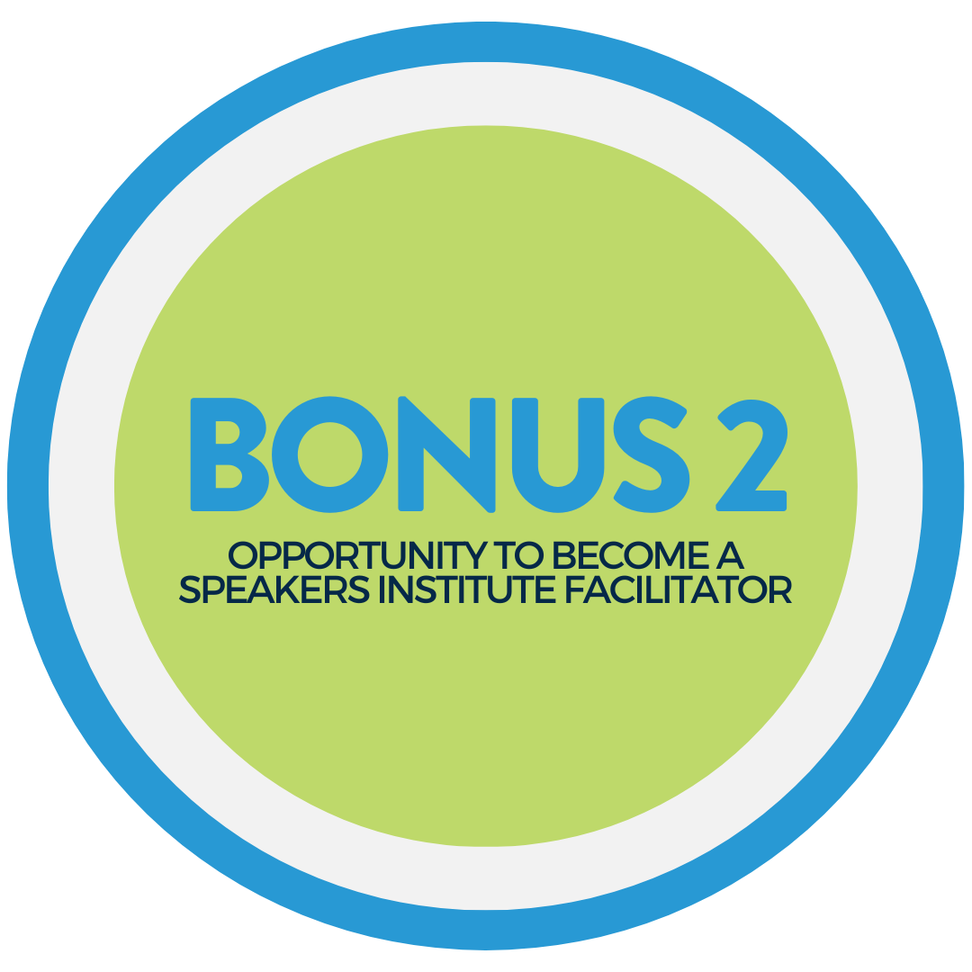 With weekly mentoring, 9 intensive one-day experiences (online or in-person), and exclusive masterclasses, you’ll gain tools and strategies that most speakers take years to discover. Plus, you’ll have access to a library of videos, templates, and resources to keep you sharp long after the sessions end.